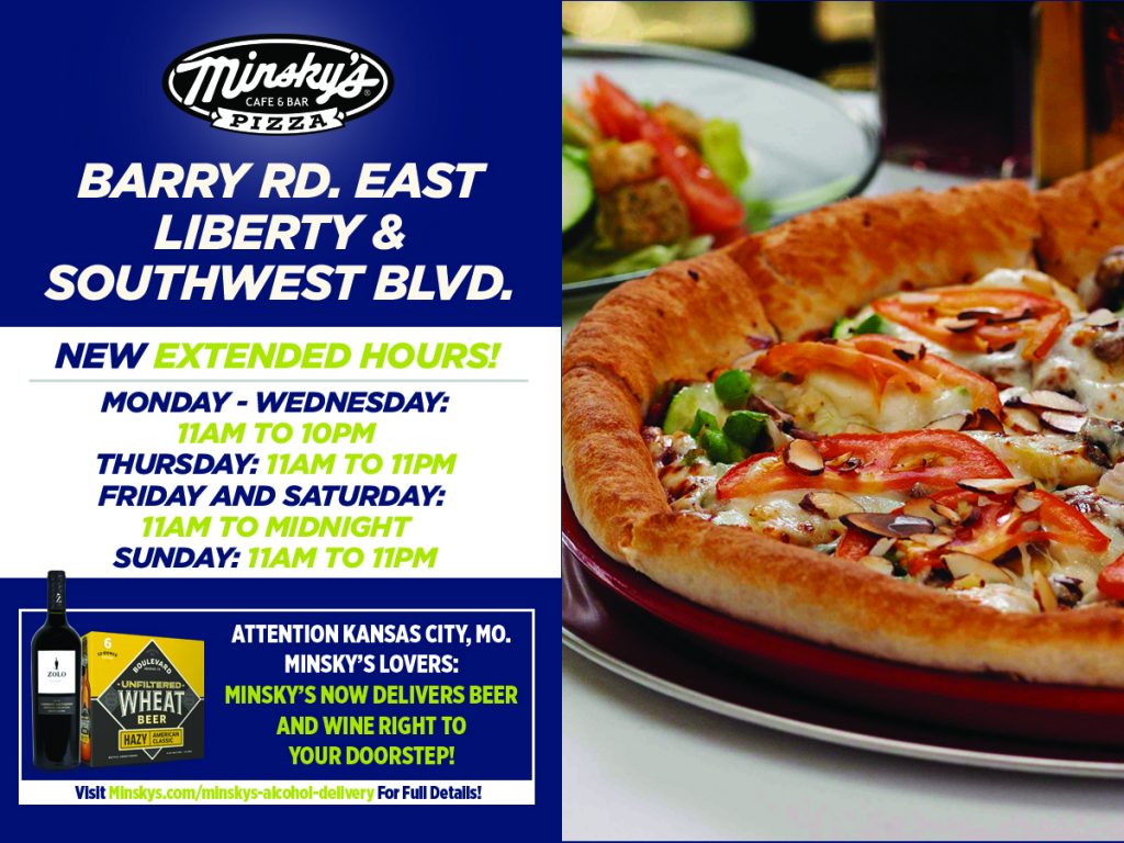 ATTN: Minsky’s Pizza lovers! Beginning Friday, March 8th, our Barry Road East, Liberty and Southwest Boulevard locations will now have extended hours! Now open: Monday – Wednesday: 11:00 AM -…