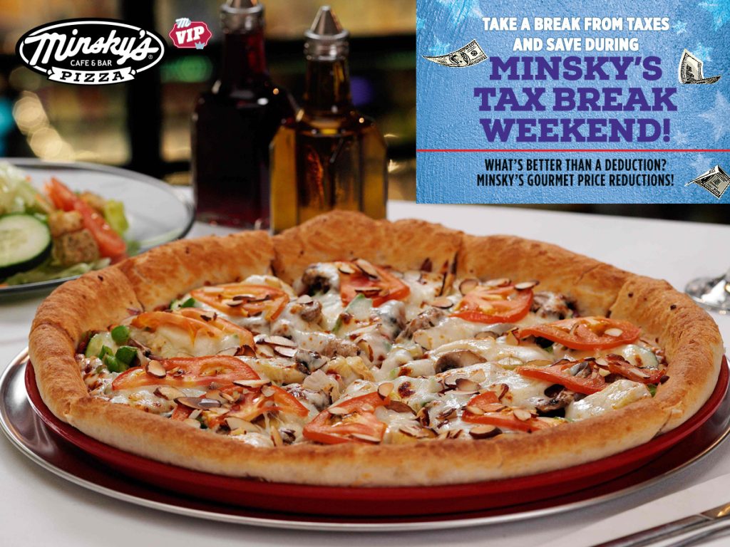 All caught up on your tax deductions? Sounds like the perfect time for a Minsky’s Pizza price reduction! This Saturday, April 13 through Tuesday, April 16, 2019 enjoy not one,…