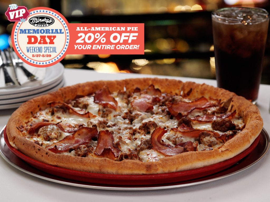 Celebrate your Memorial Day Weekend with one of America’s greatest loves – Minsky’s Pizza! So relax & embrace the 3-day weekend, let Minsky’s do the cooking for you with a…
