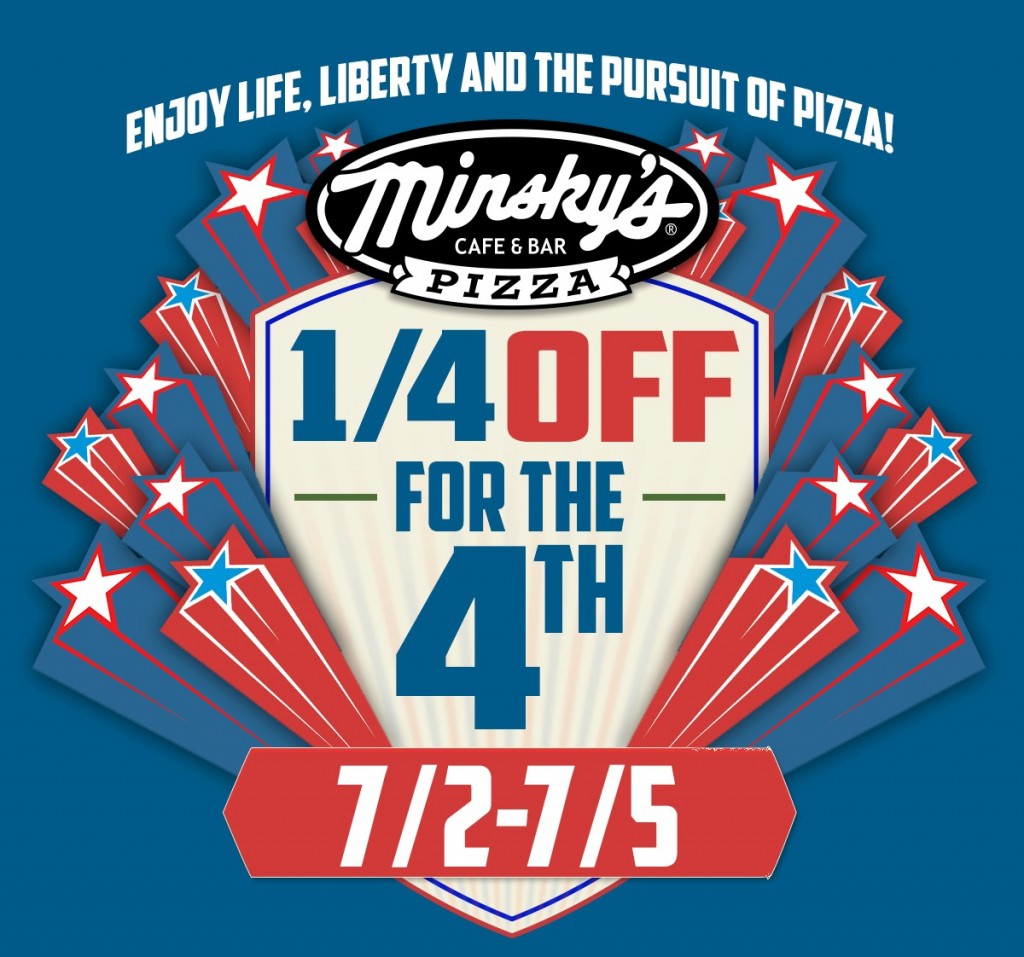 Spend your 4th of July the Minsky's way and save 1/4 off of your total check! It's time to indulge in your Minsky's favorites in a BIG way. Choose from…