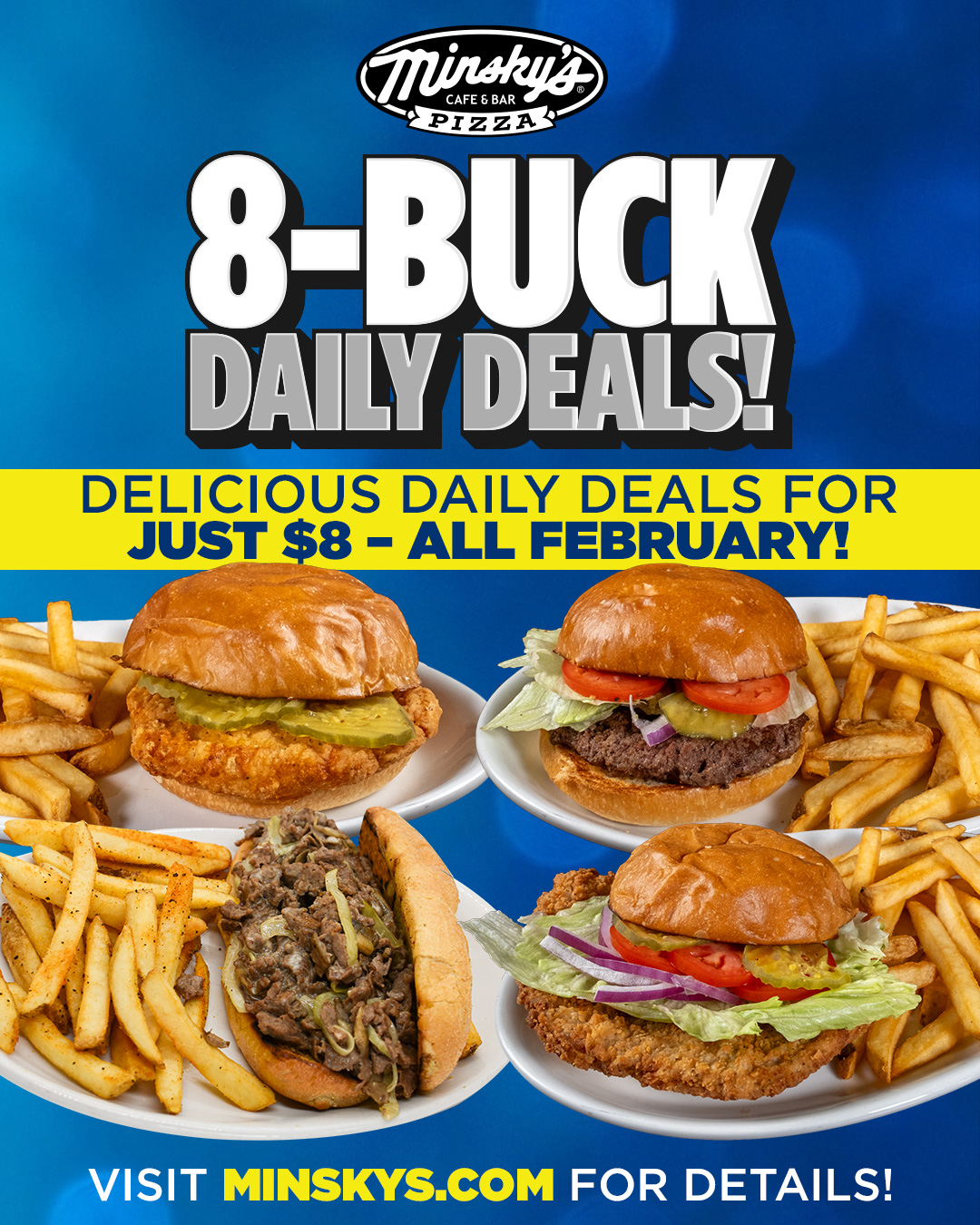 Enjoy these Minsky's favorites for just $8 - all day, Monday-Thursday, for the month of February! Try these exceptional deals for lunch, dinner, or a late-night bite (or at these...