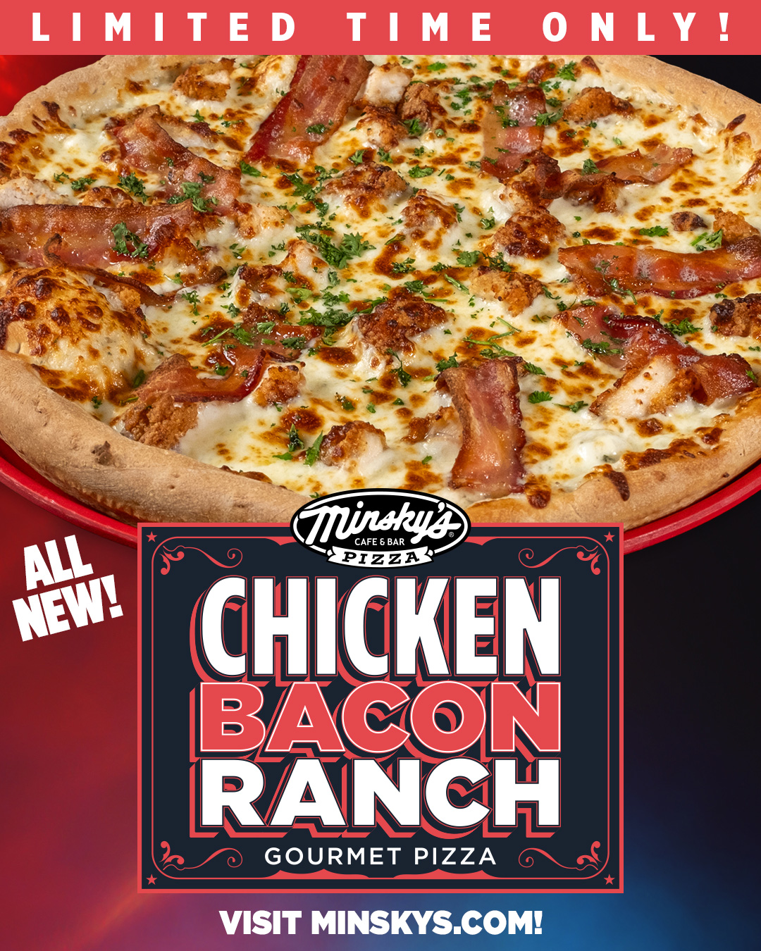 The all-new Chicken, Bacon, Ranch Gourmet Pizza is available now at Minsky's - but only for a limited time! Minsky's begins this mouthwatering Gourmet pizza with a generous portion of...