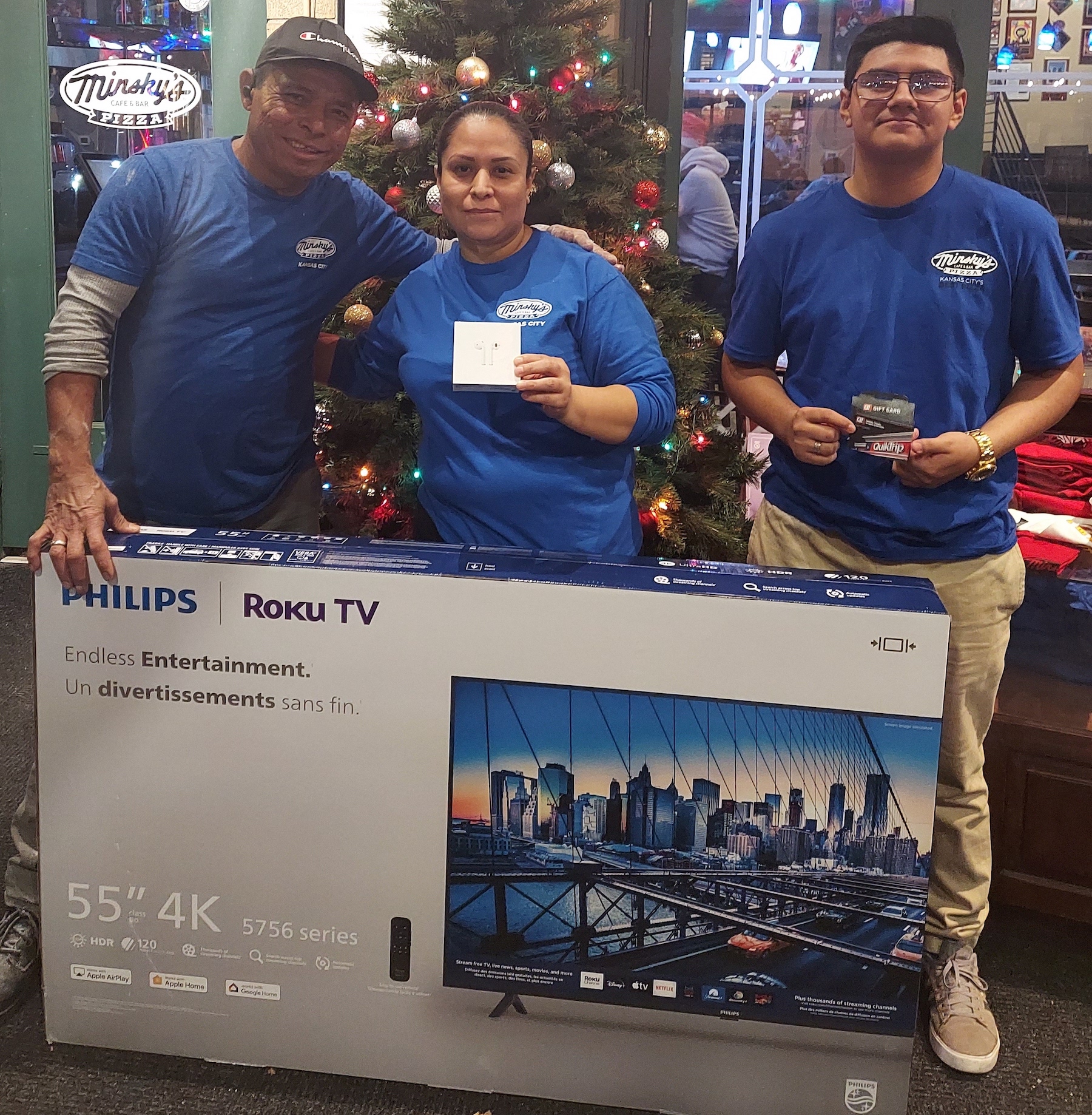From servers and delivery drivers, to bartenders and dishwashers – Minsky’s staff was entered into a raffle at every store throughout Kansas City for a chance to win Flat Screen Smart TVs, Apple Air Pods or holiday gift cards! It takes KC’s best people to make KC Best Pizza, and Minsky’s is proud to employ over 800 of the best people across the metro area who every day help to make Minsky’s great!