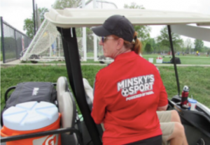 We had the pleasure of being able to stop by the Midwest Mother’s Day Classic tournament last weekend and check out all the teams that entered. We loved walking around and seeing all of the Field Marshals with their “Minsky’s Sport” game shirts on and cruising around in the “Gourmet On The Go” golf carts!