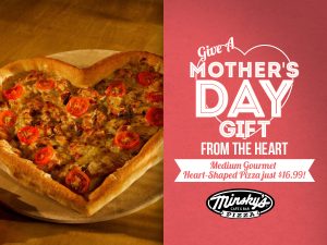 This Mother’s Day treat the special Mom in your life to a gift from the heart – Minsky’s Gourmet Heart-Shaped Pizzas!