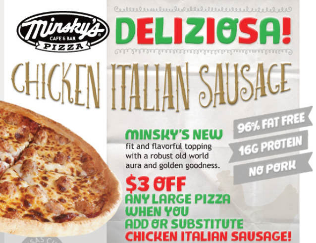 Minsky’s now offers Scimeca’s Chicken Italian Sausage!